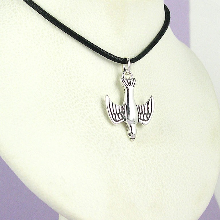 The Dove, a symbol of Peace. Sterling Silver. Measures 20 x 25 mm. Comes on adjustable 18-20 inch black cord. SKU P316
